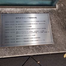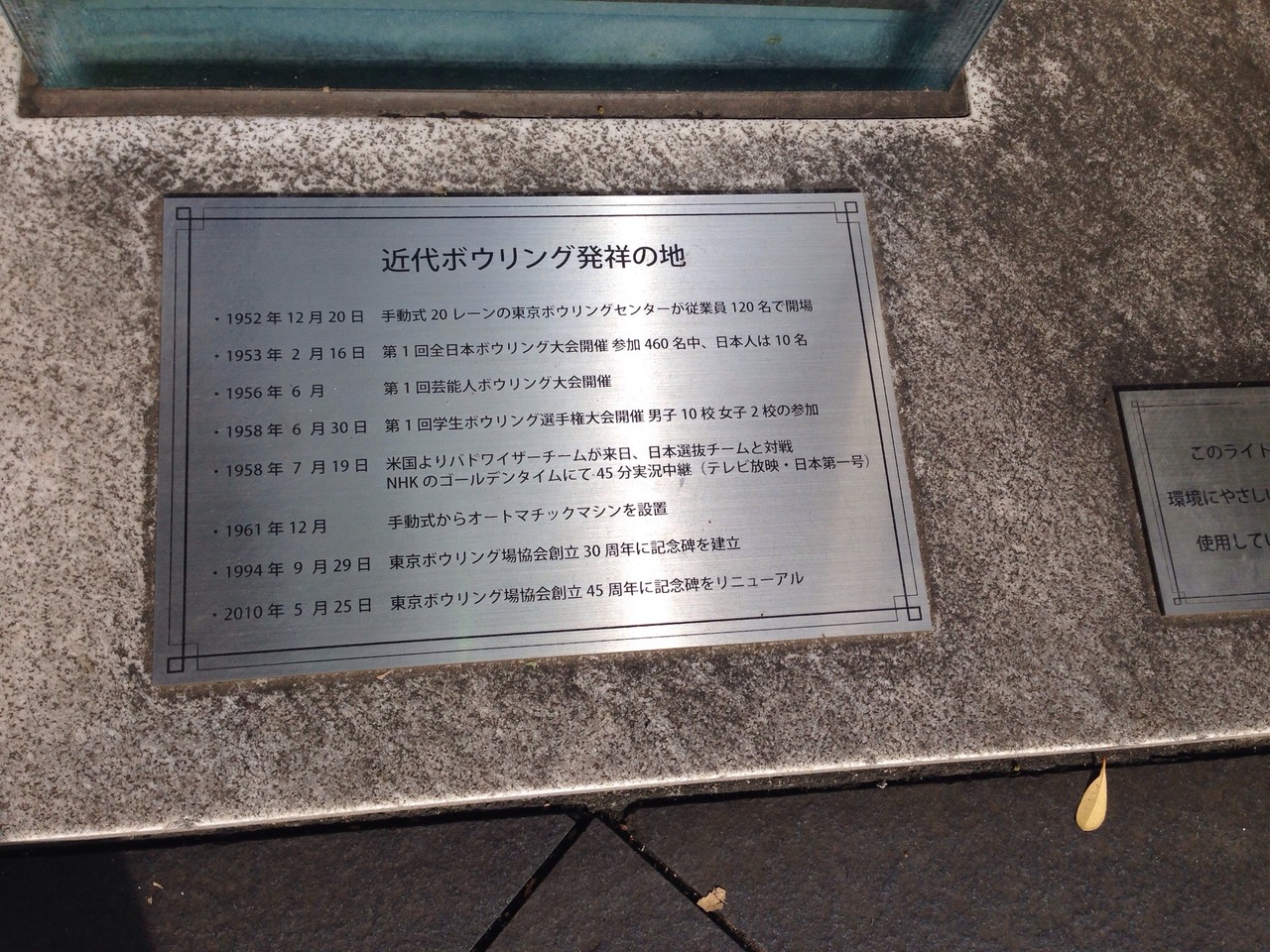 クリアな近代的な碑がひっそりと建っています。具体的にどこにボーリング場があったのかも分からないようなざっくりとした説明が書かれていますが テピアの所なのでしょうかね。 野球場、ラグビー場、国立競技場…そしてボーリング発祥の地 この辺はスポーツ天国です。