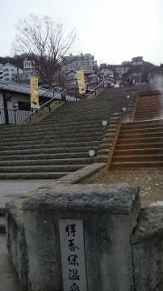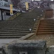 工事してきれいになったので歩きやすいですが、石段が神社の上まで続いているので結構しんどいです。石段の真ん中に温泉がながれていたり、途中足湯の無料があったり、有料の石段の湯があったり、お饅頭やさん、射的屋さん、飲食店などが両側に並んでいます。