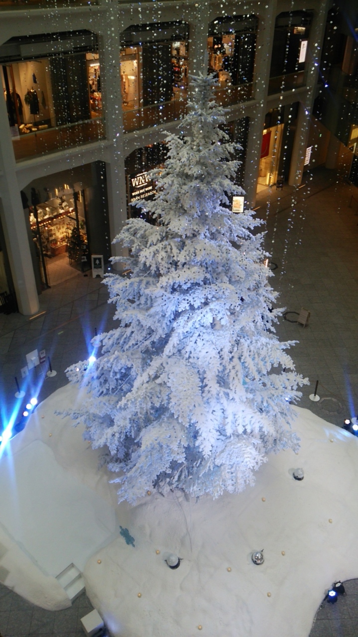 今年も真っ白い雪だけのツリーが1Fに飾ってありました。