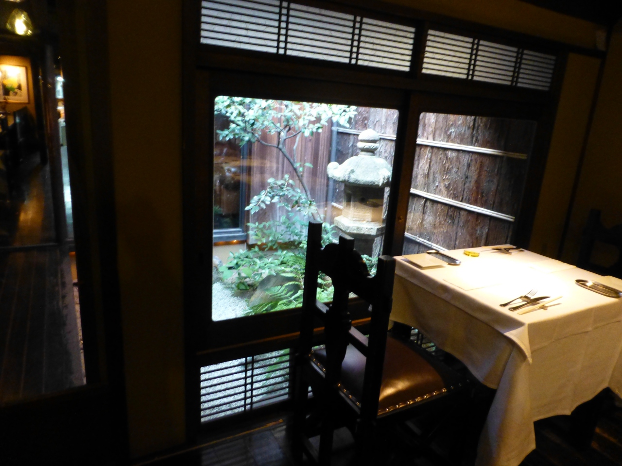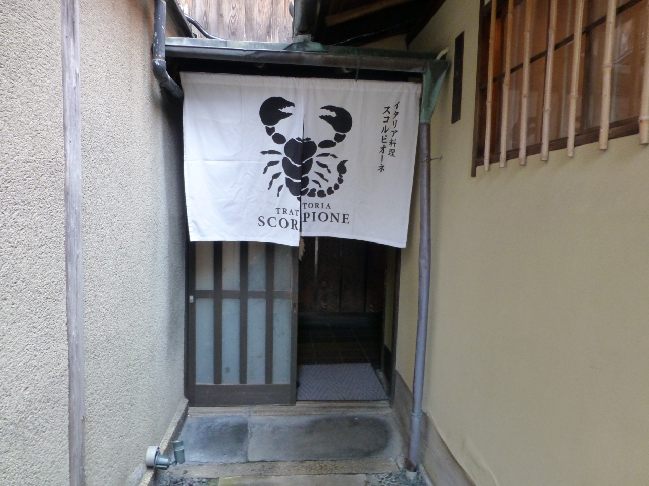 築160年のお茶屋さんを改装したお店で 外からは イタリアンのお店とは 想像がつきません。さそりの暖簾をくぐり 坪庭に面した1階のお部屋で ランチをいただきました。