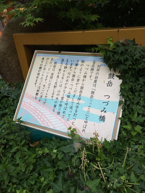 駐車場から砂湯に向かう、途中に、鼓岳のつづみ橋が有ります。この橋、対岸の岩崖は、鼓岳と呼ばれている名勝との事で、つづみ橋から鼓岳に向かって、拝み手を打つと鼓のように音がこだまするとの事です。
