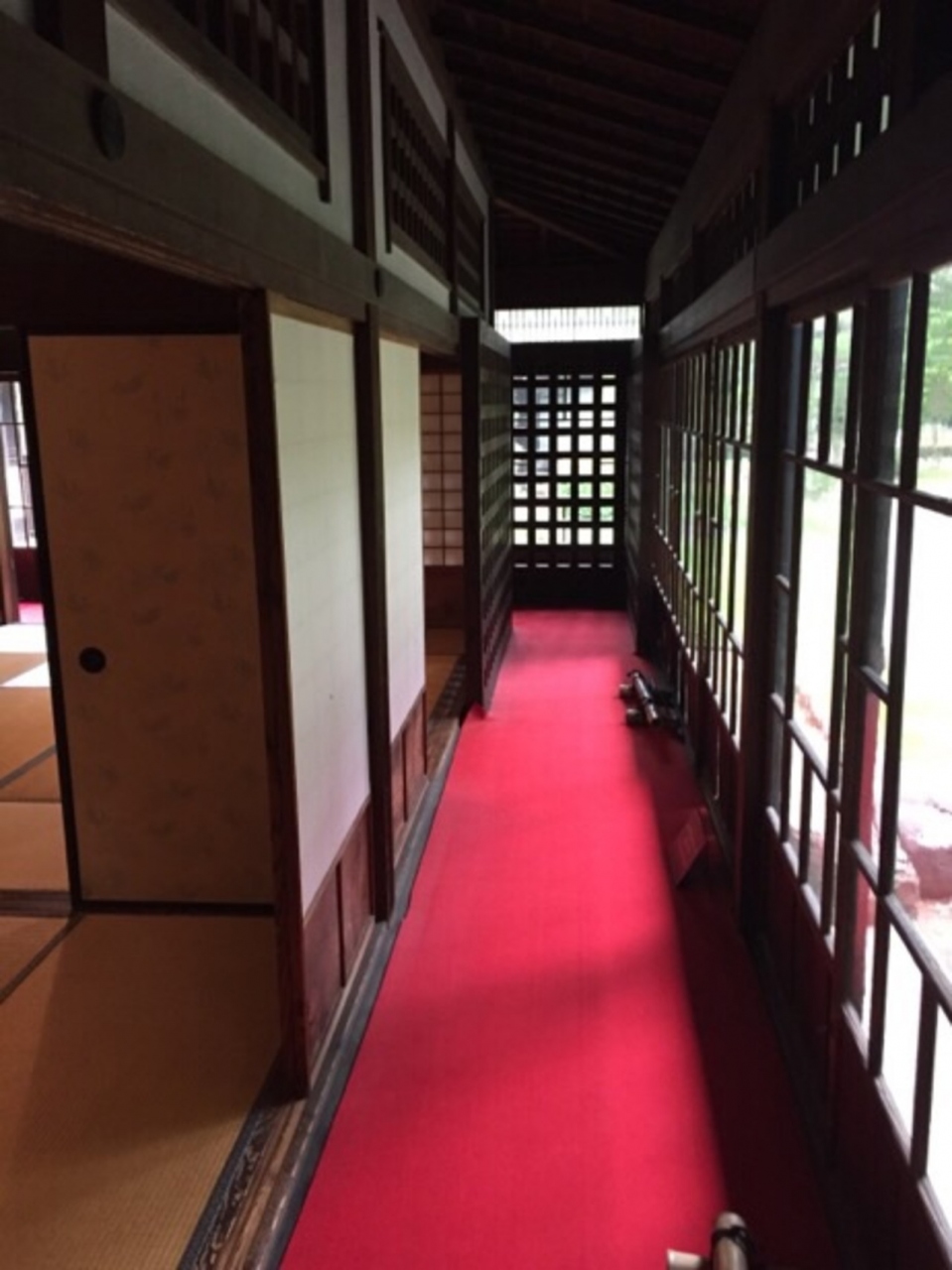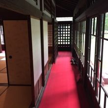 建物の中も入る事ができ、廊下の赤い絨毯が雰囲気があります。