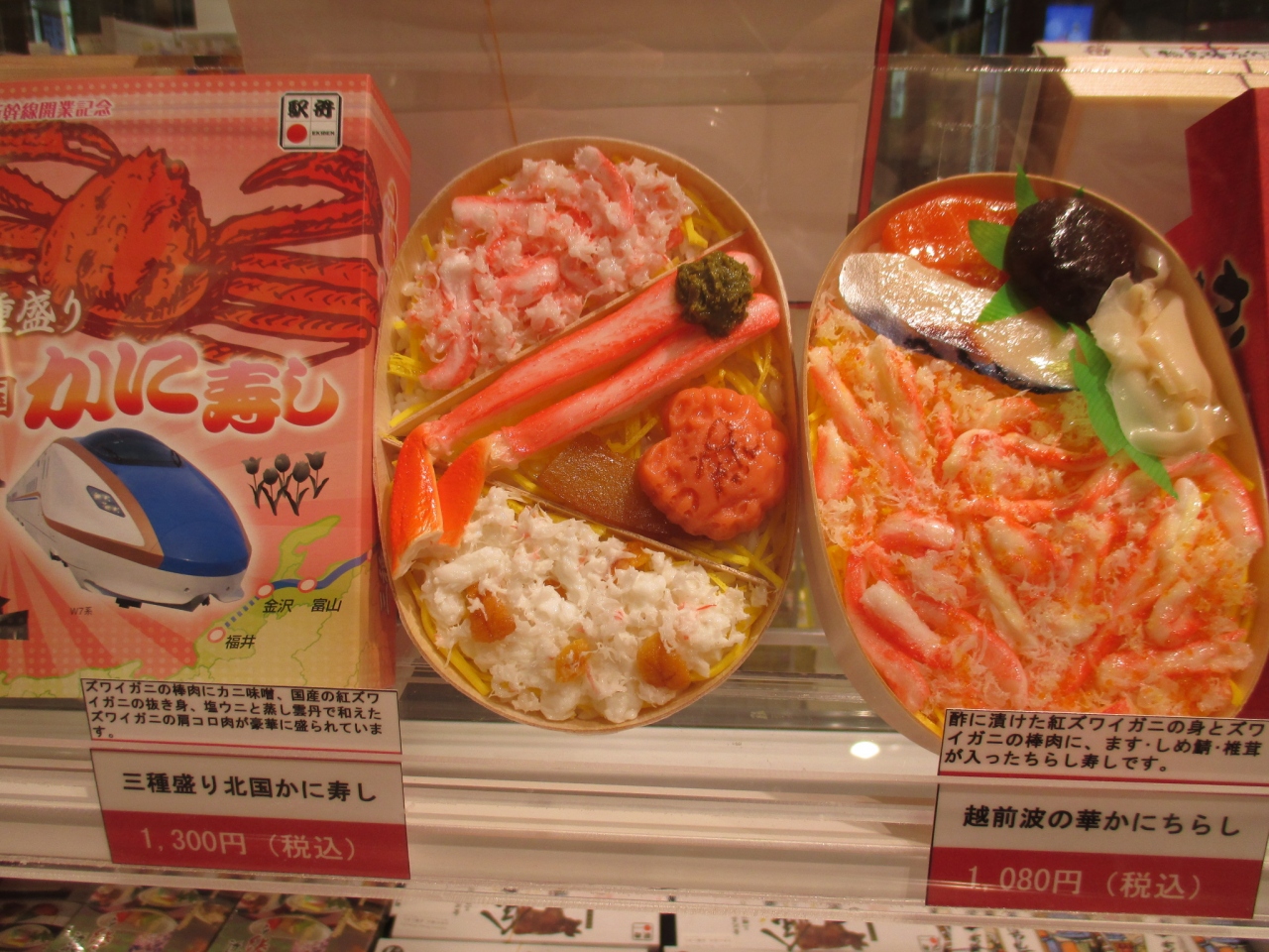 金沢(石川県各地)の名産みやげ物はもちろん、かに弁当など、魅力的な食べ物も豊富な種類を陳列。