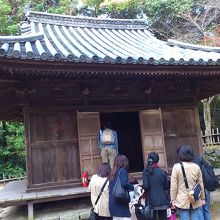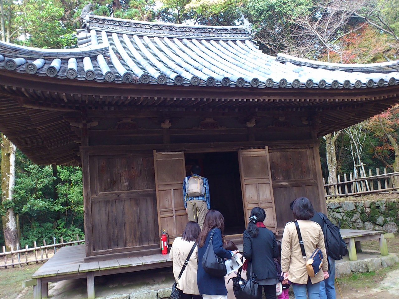 書写山圓教寺の摩尼殿、三之堂、奥の院の順で参詣し、来た道とは違う道で摩尼殿へ戻ることにしました。道を下って行くと、最初にこの金剛堂が現れます。室町時代の建物で、三間四方の小堂です。まわりは柵で囲われています。棟の鯱瓦は日本最古のデザインといわれ、国の重要文化財に指定されています。