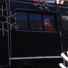 クリスマスのディスプレイがしてあり運転席にサンタさんがいました。