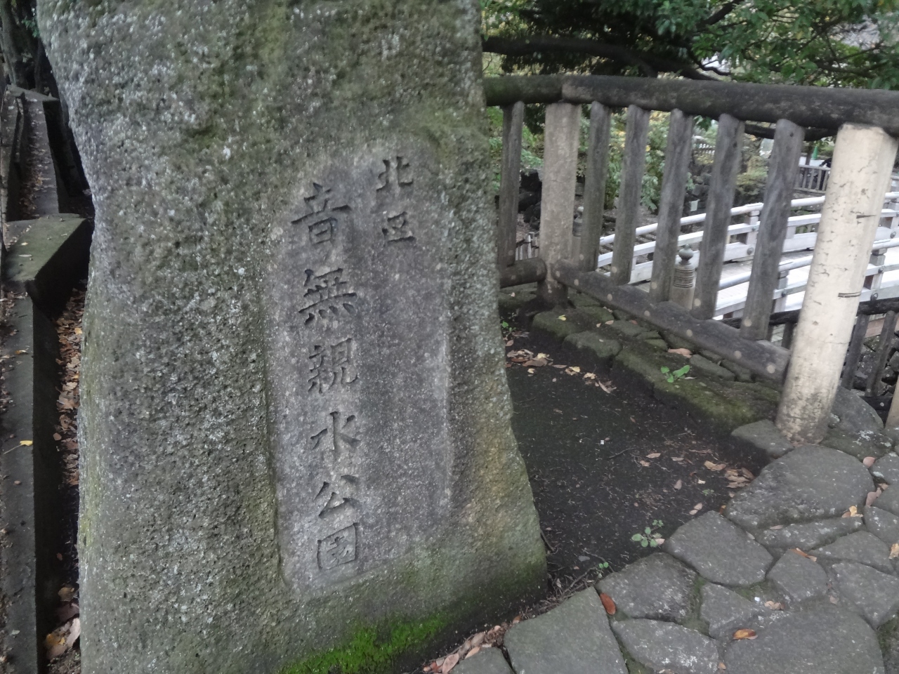 王子駅周辺の公園といえば飛鳥山公園が有名ですが、駅を降りたすぐのところにも音無親水公園というのがありました。石神井川の旧流路に整備された公園で、橋の脇を降りていくと川沿いの整備された公園を散策することが出来ます。水が流れている時季もあるようですが、訪れた11月下旬はまったく水がありませんでした。訪れている人も皆無でとても寂しげでしたが、夏は水遊びなどできっと賑わうのでしょう。