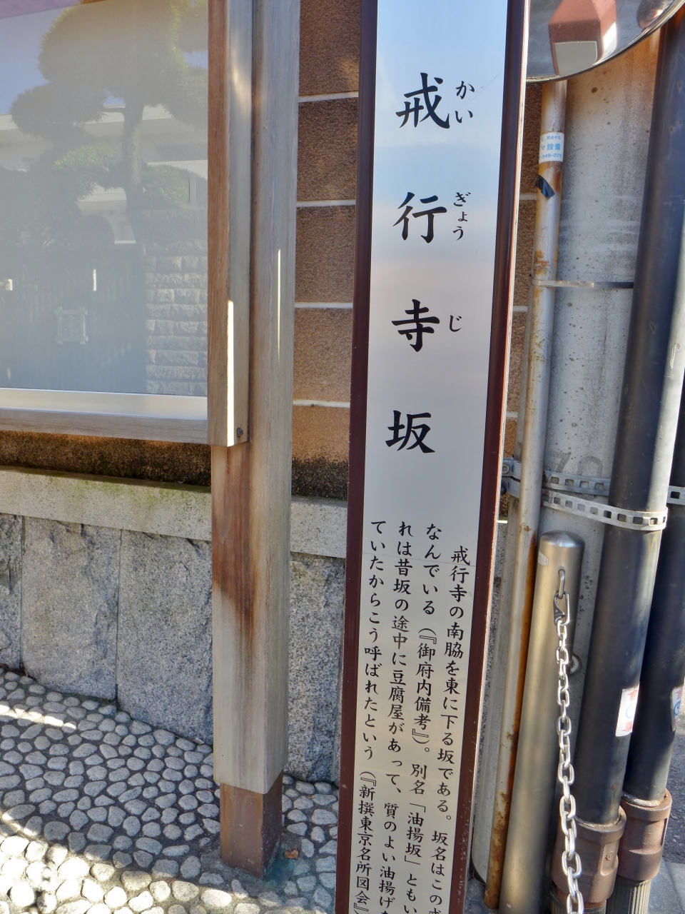 その中に戒行寺というお寺の前の坂が「戒行寺坂」です。長さは100m位あって、結構高低差があります。