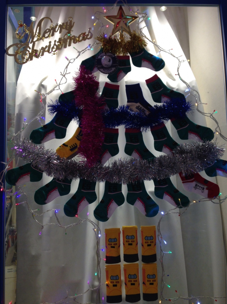 大きなドクターイエローがあり これは子供うれしいでしょう。入口にはソックスでクリスマスツリーを演出したディスプレイがあり 手作り感があったかくて良かった。