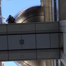 特に景色が良いわけでも休憩スペースが有るわけでもないのですが、ここから見る球体がなかなか面白かった。結構近く大きさを実感できます。そして橋を渡した様なビルの作りも間近で見れます。