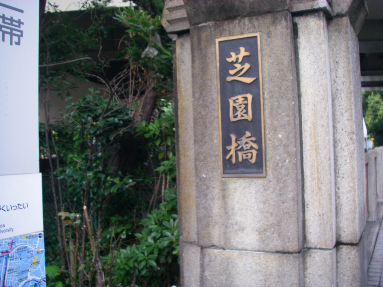 都営三田線の芝公園のA3出口から日比谷通りを芝公園とは反対側に進んだ場所にある交差点のところに橋はあります。