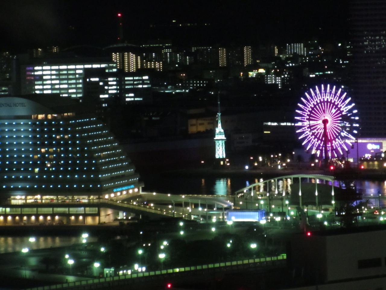 山側は夜だったので、神戸市章や碇、船などの