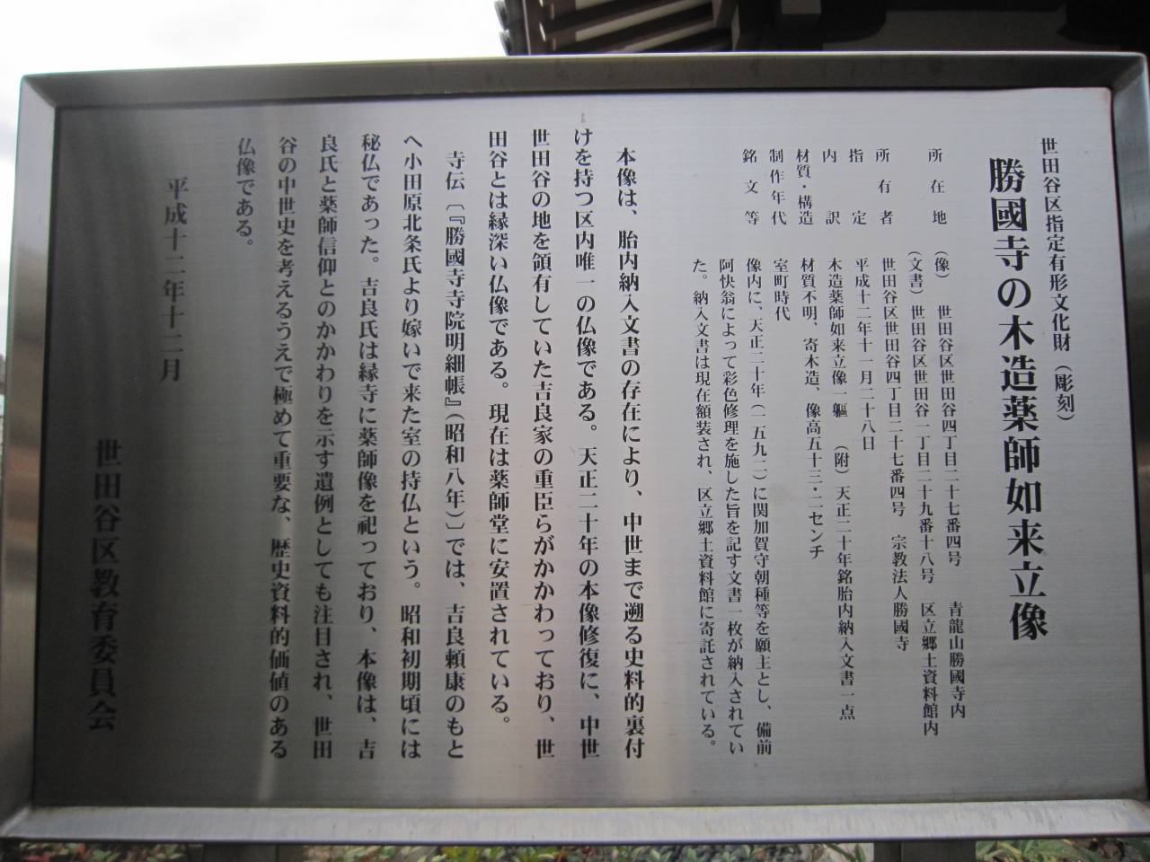 薬師堂の仏像は中世まで遡る史料的裏付けを持つ世田谷区内唯一のものだそうです