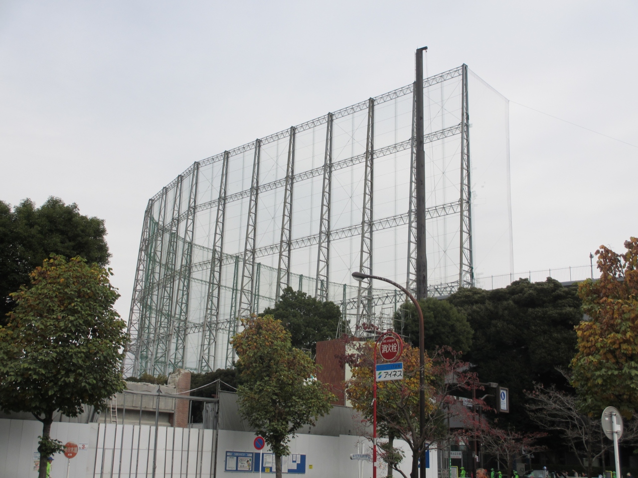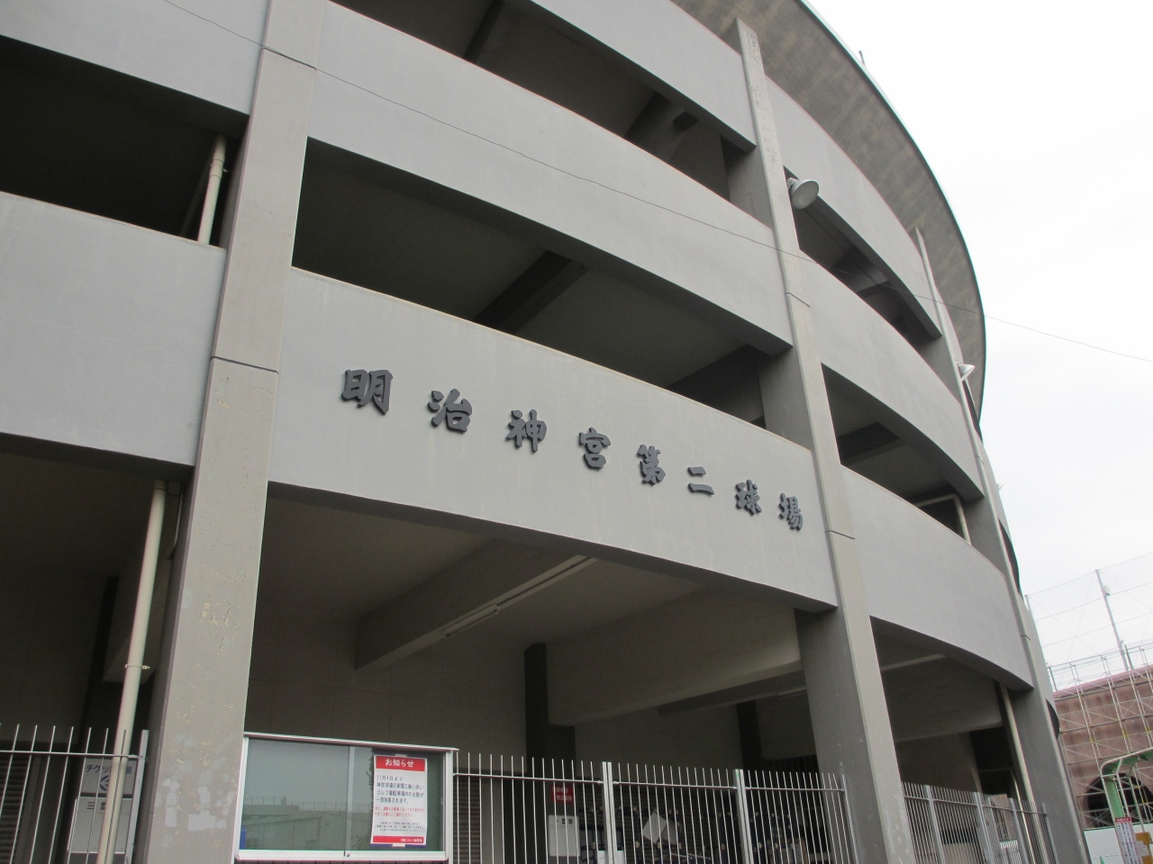 神宮野球場の隣りにあります。11月のシーズンオフに訪れたので工事中でしたが、シーズン中は高校野球東京都予選などに使用されます。遠くからでもフェンスが目立ちます。野球が行われない時期は、ゴルフ練習場として使用されています。