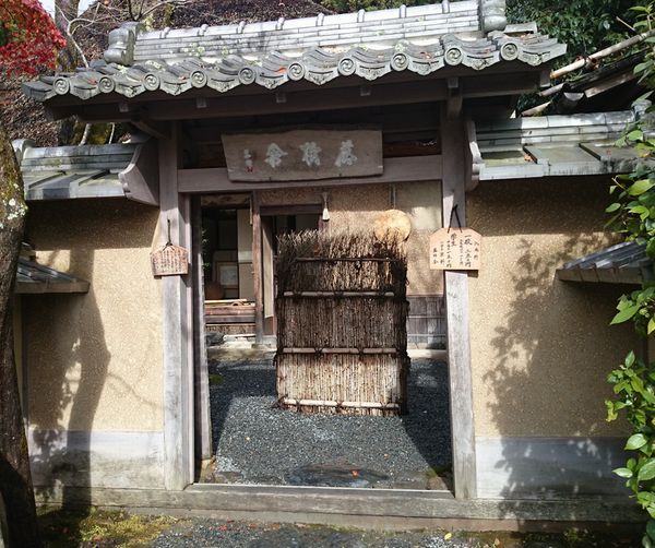 常寂光寺から二尊院へ向かう途中にある「井浦人形店」の東方面にあります。松尾芭蕉の門人である俳人「向井去来」が閑居した小さな草庵です。庵内には今が時期である、柿の実がなっていました。入場料は大人250円です。
