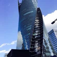 全面ガラス張りの捻じれたビルです。