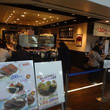 羽田空港第二ターミナルのアッパーデッキトウキョウ内にある回転すしのお店です。フードコート的なお店が多い中、ここでは店内でいただくことが出来ます。しかも思ったよりお広くて、調理場をぐるっと囲むように席が配置されています。単価は安いし、それでいて味はなかなかのもの。特にネタの大きさに満足感がありました。さすがは日本の回転ずしです。皿単位なのでたくさん食べることもできますし、少しだけいただくだけでもOKです。個人的には軽くすしでもつまんでって気分で立ち寄ることが多いです。