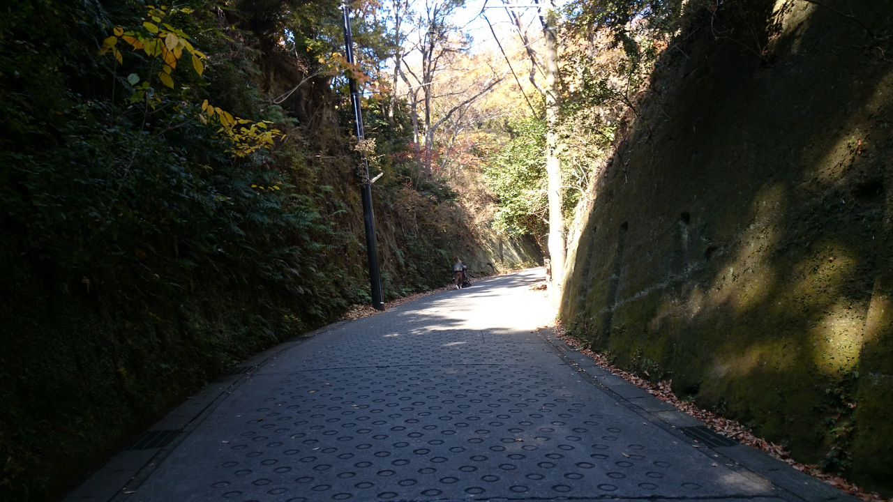 また源氏山公園から錢洗い弁天方面にも同様な切り通しの急坂がなありこちらは舗装されているので、車で通れます。