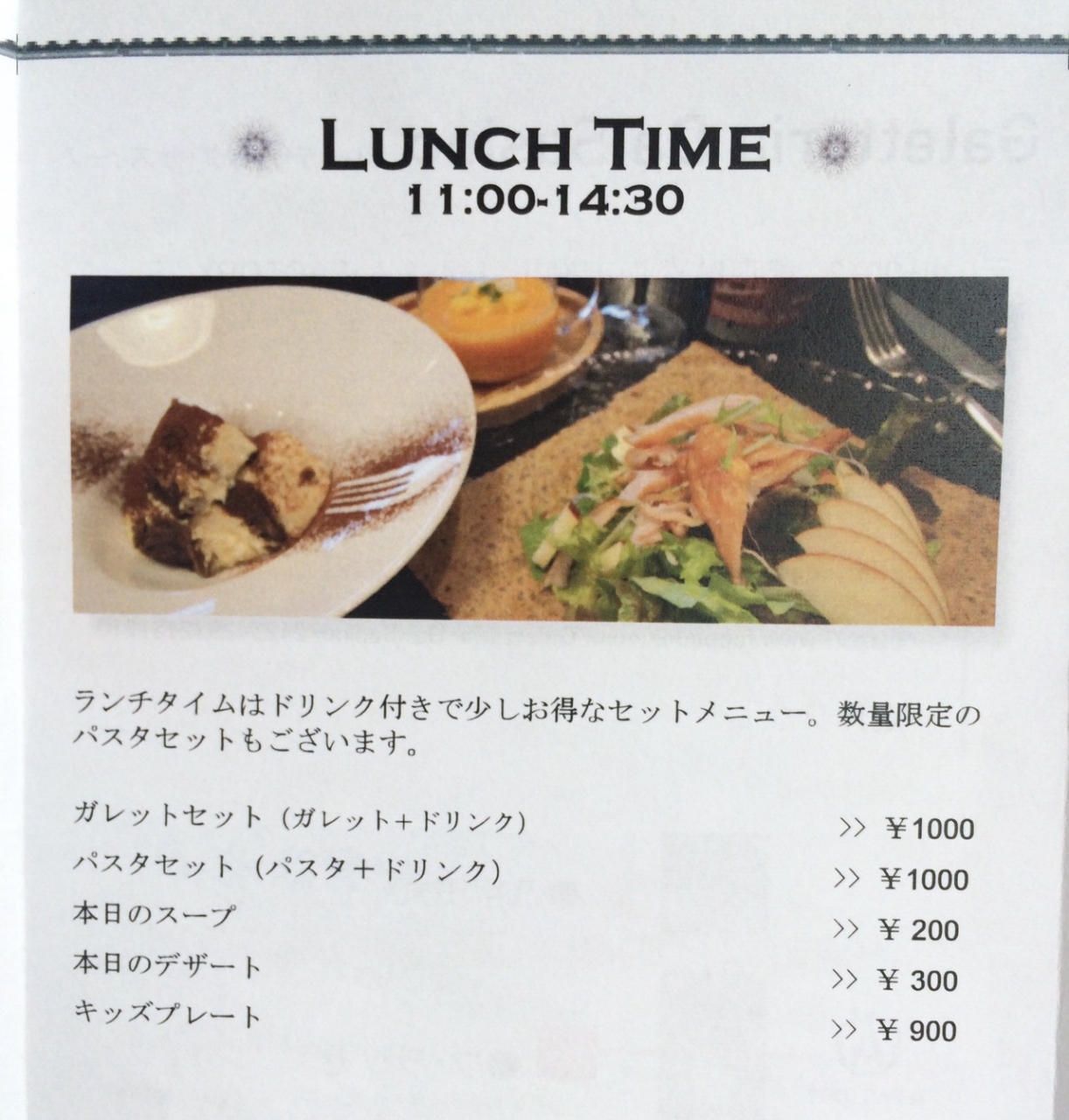 食事の後にパソコンも使いたかったので、1階のお寿司やしゃぶしゃぶはやめて2階のガレット屋さんに入りました。