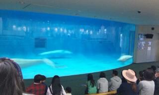 イルカショーは、よく見るけど、シロイルカのパフォーマンスは初めて知りました。