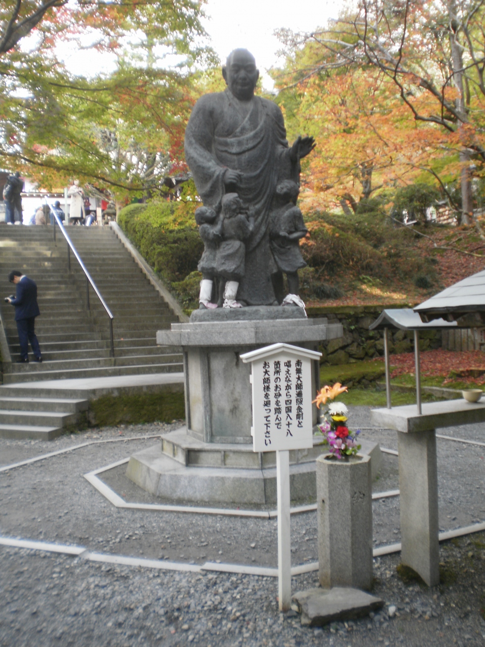 東福寺に紅葉を観にいったけど、あたたかい日が続いたせいかあまり色づいてはいませんでした。 そこで坂を上ったところにある泉涌寺に向かいました。 その途中にある今熊野観音寺にも立ち寄りました。 ここは樹木が多くて、一部紅葉していました。念仏を唱えながら廻るところなどがあって景色を楽しみました。