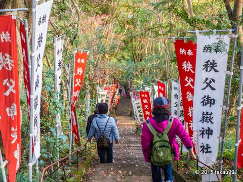 かの東郷平八郎ゆかりの神社で、埼玉県有数の紅葉の名所ということで期待していきましたが、紅葉はかなりしょぼかったです。拝殿は山の一番上にあり、急な階段を登るのがかなり大変です。山上からはかすかに東京スカイツリーが見えます。