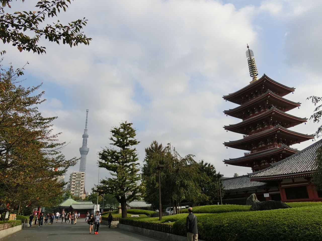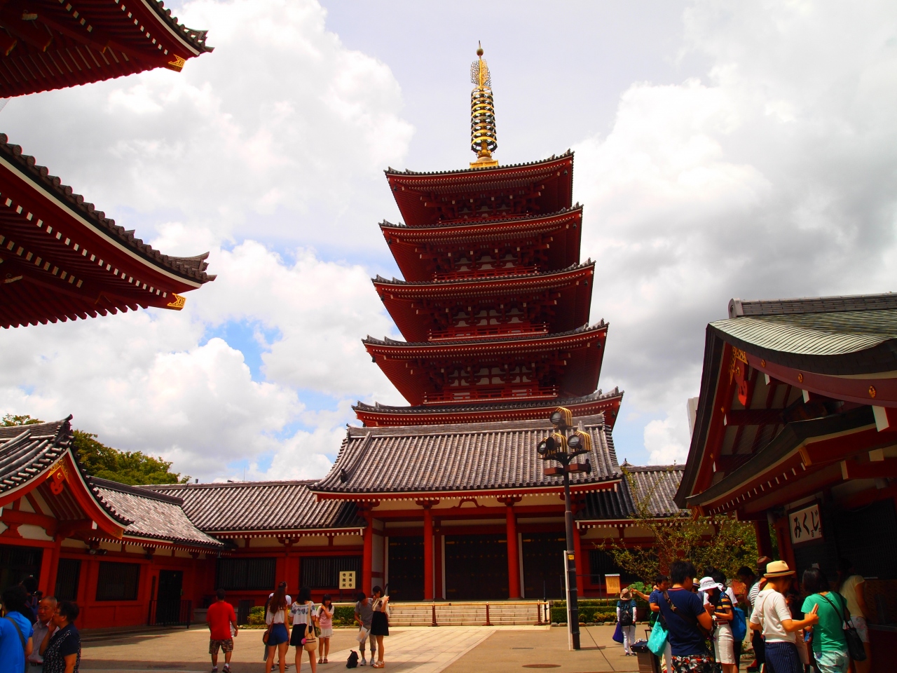仲見世通りを抜けて宝蔵門をくぐると、すぐ左手に五重塔が見えます。