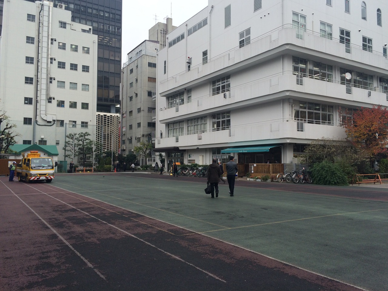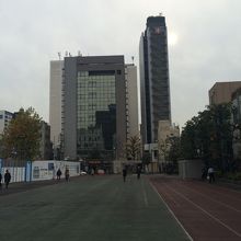 新橋駅烏森口から徒歩2~3分の場所にあり陸上のトラックレーンが公園になっています。数年前まで学校の校庭だったようです。喫煙エリアがあり多くの人がタバコを吸っていました。校庭だったところを公園にしたので公園の中央にいる人は少ないです。トイレとベンチがあります。