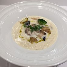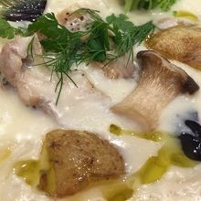 グリルチキンとポルチーニ茸 ゴンゴンゾーラのおうどん ♪