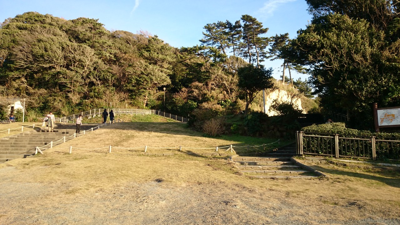 稲村ヶ崎の海浜公園は、国道134号線沿いで江ノ電の稲村ヶ崎駅から歩いて5分ほどのところにある稲村ヶ崎を中心とした公園です。。白い岩に波が打ち付ける様が荒々しいです。