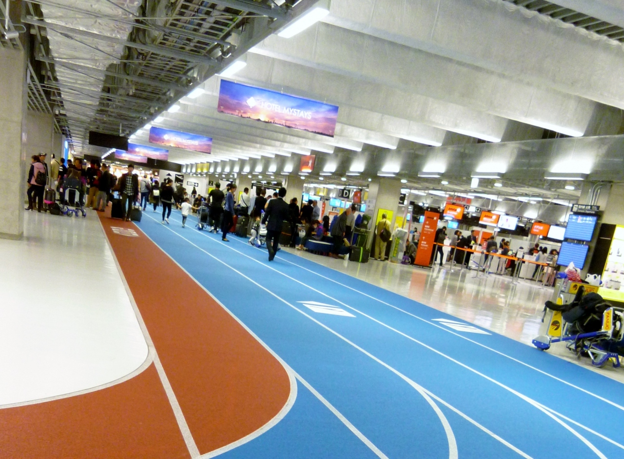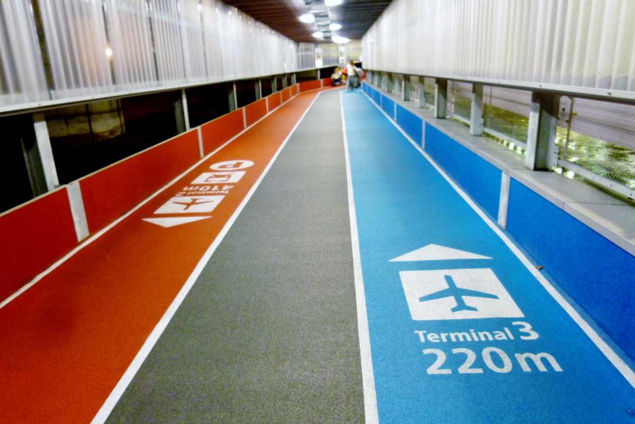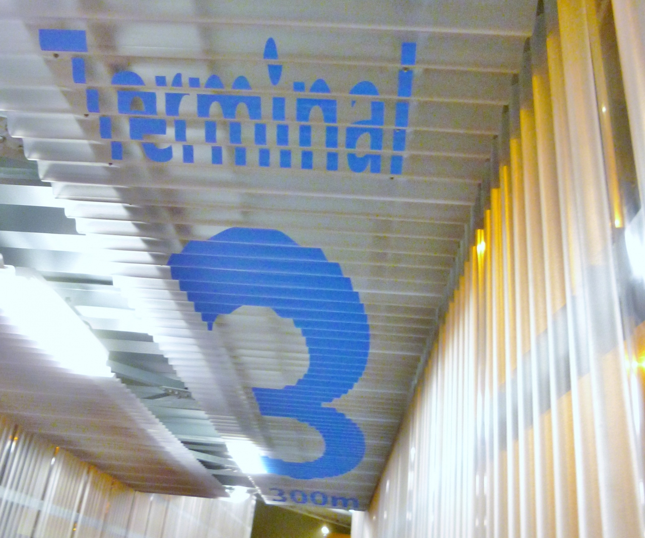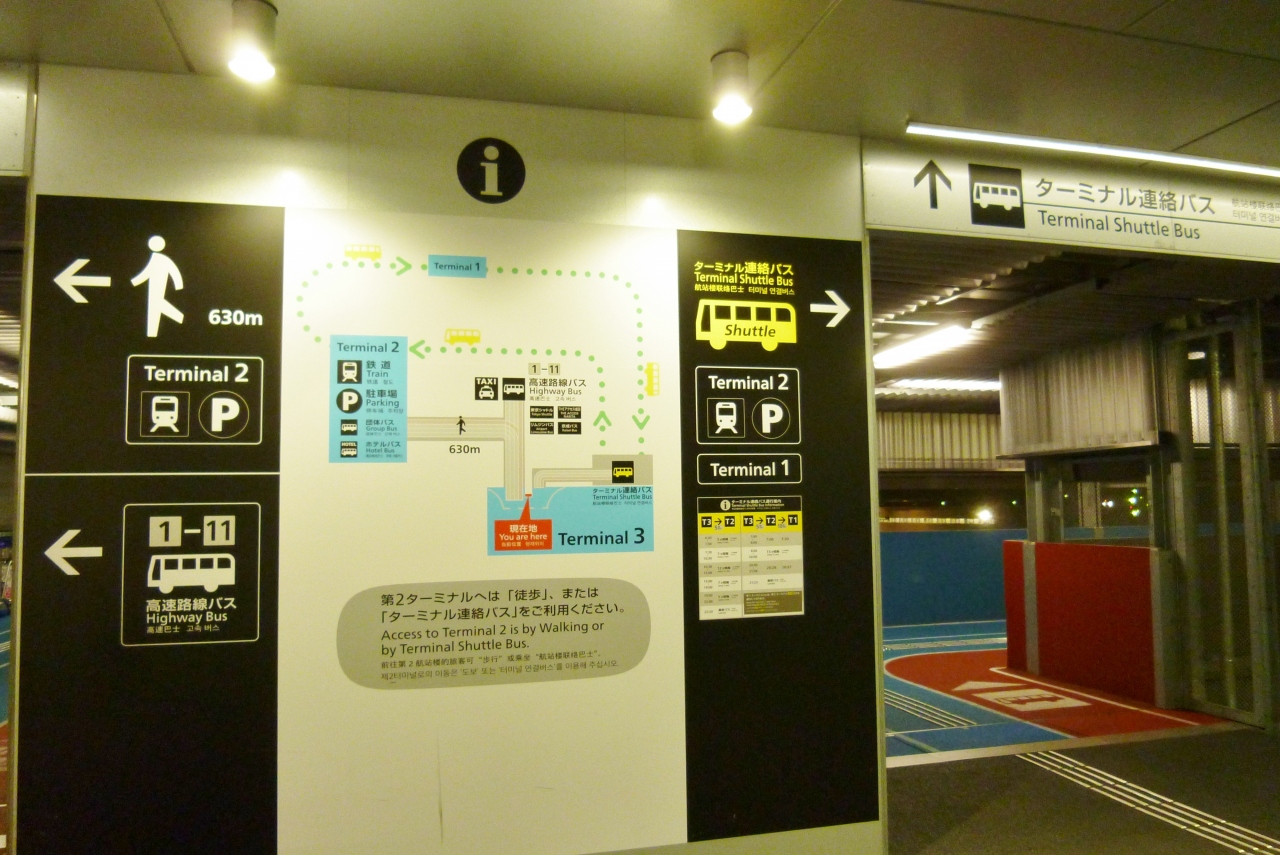 第三ターミナルが出来てから一度も行ったことがなかったので見学がてら行ってみました。第二ターミナルから徒歩で行っても空港の無料バスで行っても行けるのですが、歩いて行ってみました。スーツケースをガラガラ引っ張って歩くには少し遠いと感じましたし、所々段差があるので、スーツケースのタイヤが引っかかる恐れはあるかと思いました。でも通路の青と赤の色を変えて、通路の天井もターミナルまであと何メートルと表示があるのですが、行きは青字、帰りは赤字で書かれてあって工夫を感じました。以前はこの通路は情報通信センタービルへ行く通路だったので、空港職員の専用通路みたいな役割でしたが、今は旅行客が多く歩いているのが新鮮に思えました。第三ターミナル内の椅子は思っているより多かったです。LCC専用ターミナルが出来る前は始発便に乗るために空港のベンチで夜明かしって事がありましたが、第三ターミナルの椅子はベッドみたいになっているので野宿?夜明かしの方にはいいかもしれませんね。