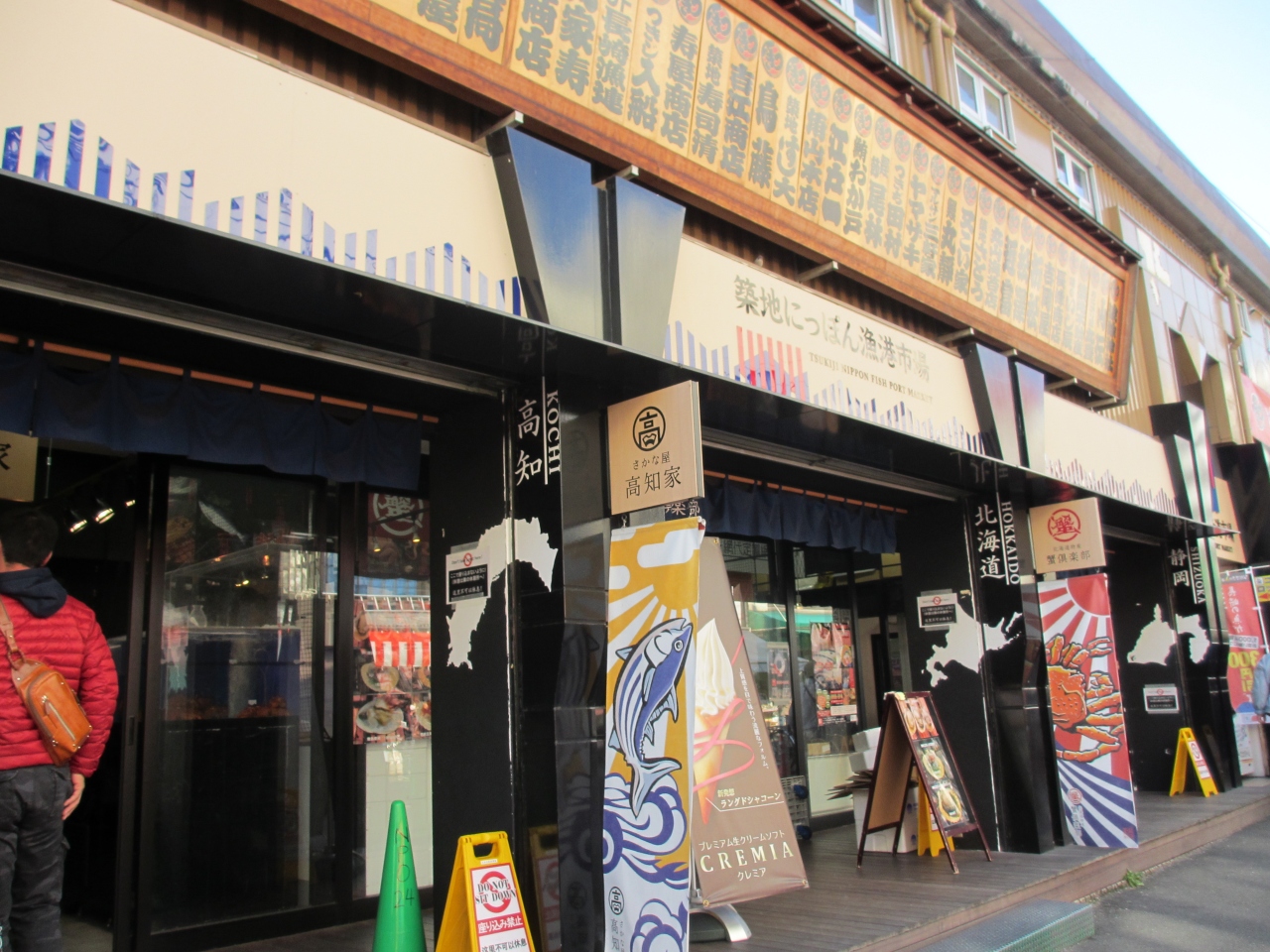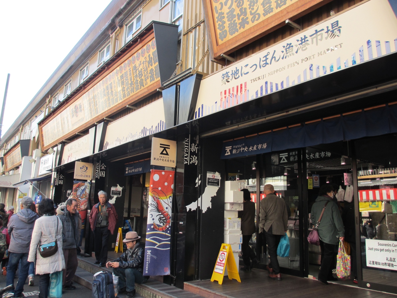 築地場外市場・波除通り沿いにある、新しくできた店です。北海道、高知、静岡、長崎、新潟を中心に、各地でとれた海産物がところ狭しと並んでいます。店内には食事ができるにっぽん漁港食堂もあり、定食や刺身を味わうことができます。