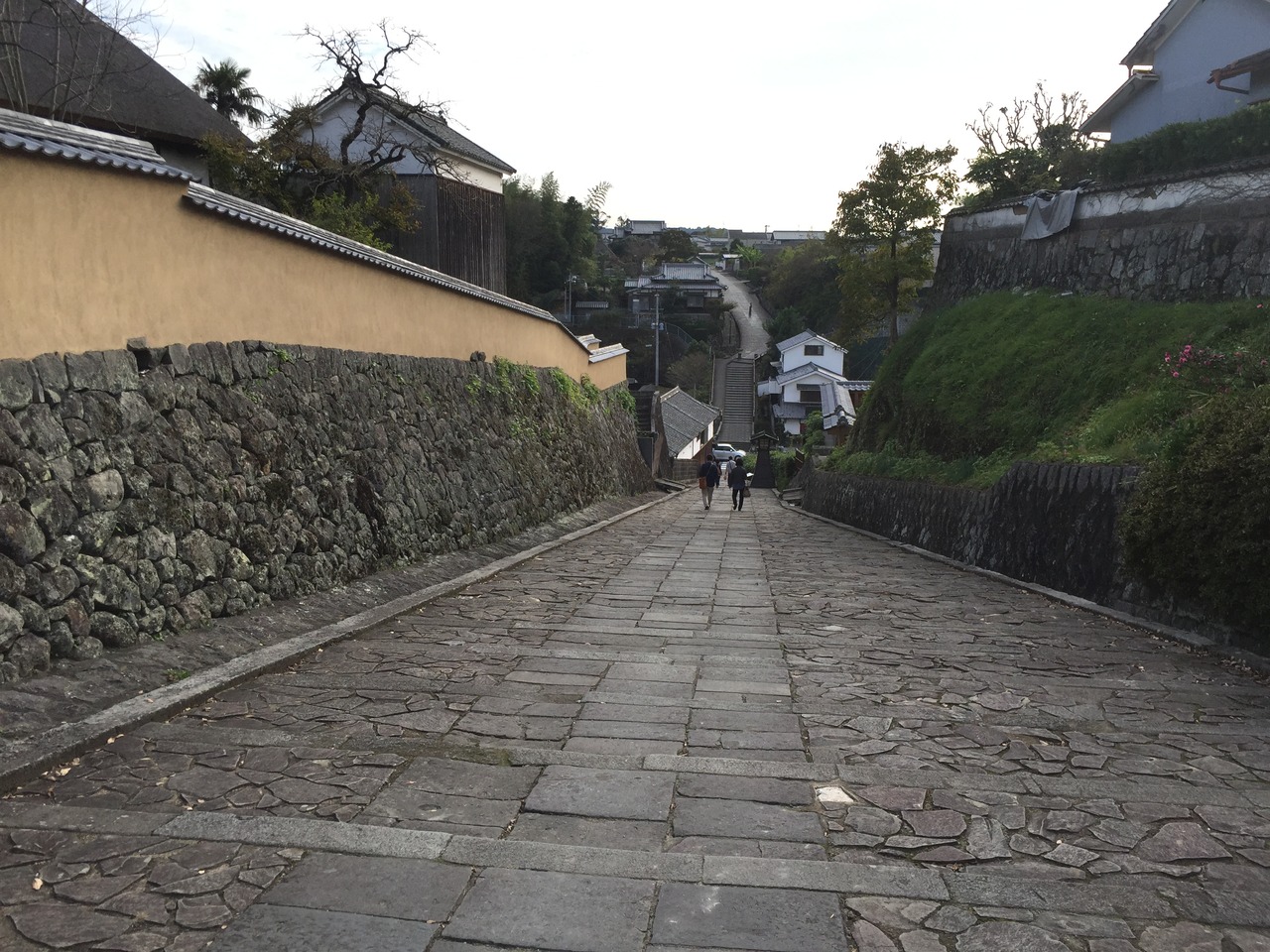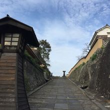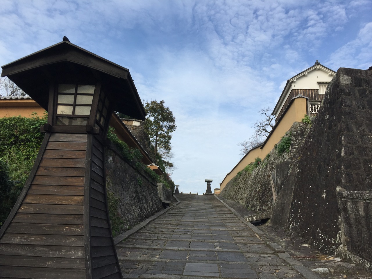 杵築の観光パンフレットや紹介記事には必ずでてくるのがこの酢屋の坂です。サンドイッチ型の城下町というキャッチフレーズを実感できる場所でもあります。階段でも急勾配でないので、着物姿の人やお年寄りにも優しい作りだと感じます。