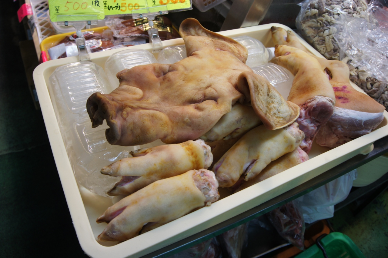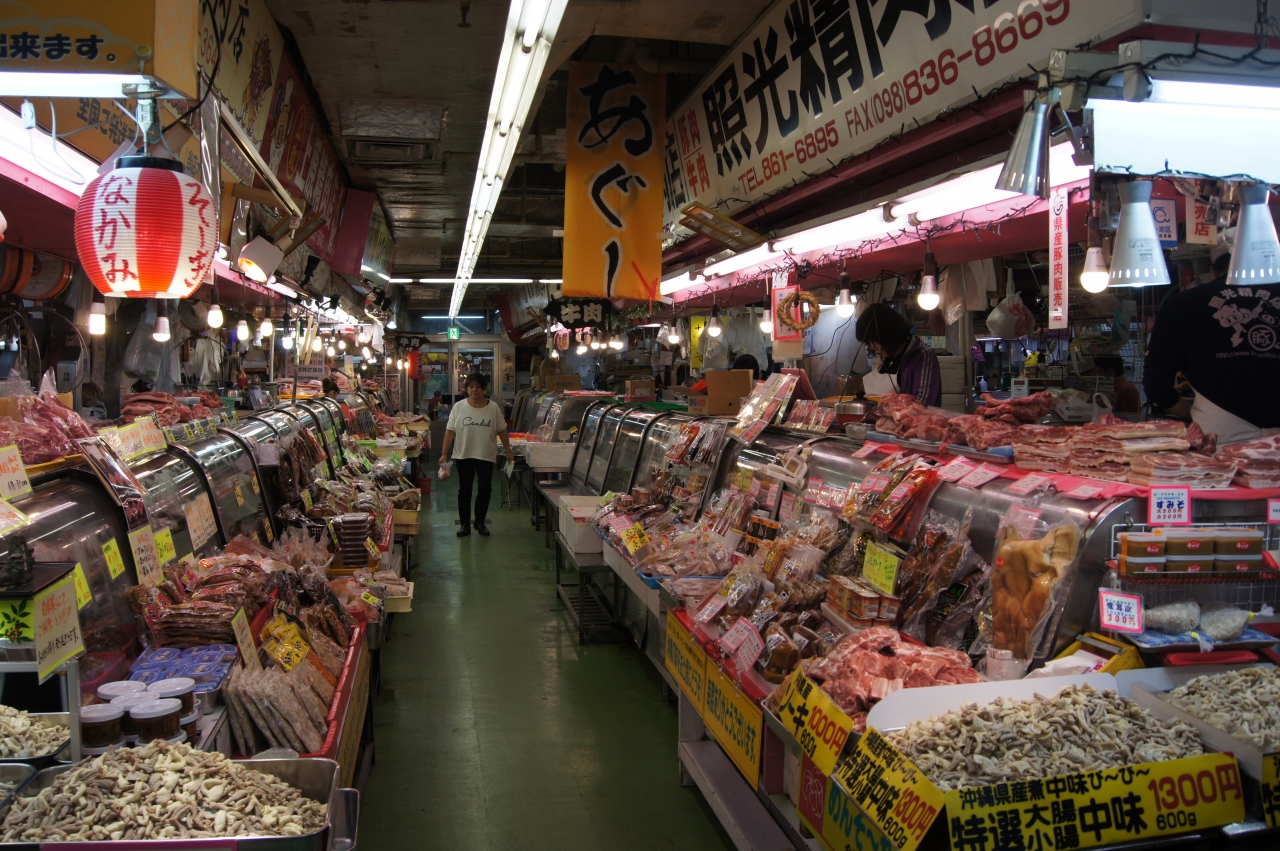 国際通りから市場本通りに入り少し歩いたところにある公設の市場です。活気に満ちた市場内には、精肉、鮮魚、青果など、ありとあらゆる食材が購入できます。庶民の台所として、戦後の沖縄の家庭を支えてきました。豚の顔の「チラガー」や耳「ミミガー」、色彩豊かな南国のアオブダイの「イラブチャー」や「グルクン」など、沖縄ならではの食材が数多く並び、見ているだけでも、沖縄の食文化や、日常生活の文化を垣間見ることができます。沖縄観光には必見です!