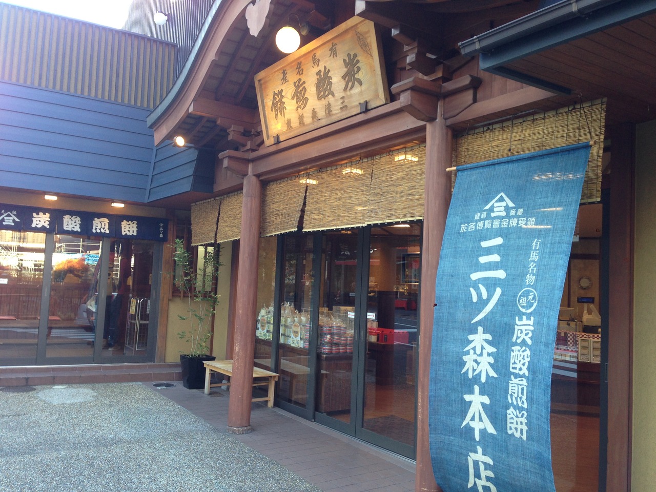 有馬温泉名物の炭酸せんべいの専門店で、木造の建屋が歴史感と雰囲気のある店舗でした。生地を流して焼き上げバリを取り形を整える作業を見学できました。炭酸せんべいはオーソドックスな味以外に生姜、ゴマ、青のり入りがありました。簡易包装の袋入りがあって自宅用に手頃でした。