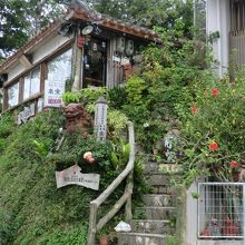 沖縄県指定文化財「南窯」という壺屋にただ一つ残った荒焼の登り窯に隣接するギャラリー・カフェです。周囲を緑に包まれた店は、やちむん通りを見下ろす位置にあり、やむん通りでひときわ目立つ存在です。階段をのぼって、店内へはいると、ところ狭しと陶器が並び、ギャラリーさながらです。希望すれば窯の見学もできます。カフェで使用する器ももちろん「やちむん」です。