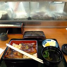生簀に地元浜名湖で捕れた活魚や車海老が泳ぐお店では、活車海老天丼にしようか迷いましたが、やはり鰻を注文しました。