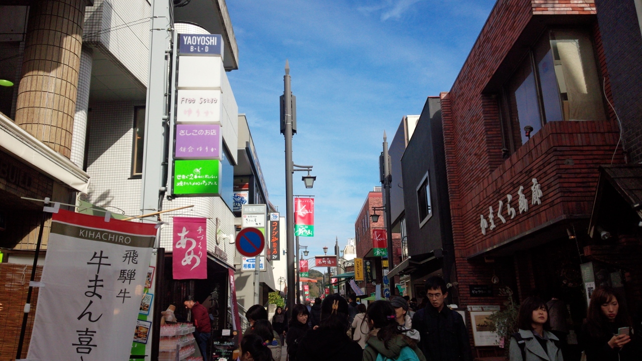 JR鎌倉駅を出て左手に進み、八幡さんまでの細い路地が小町通りです。