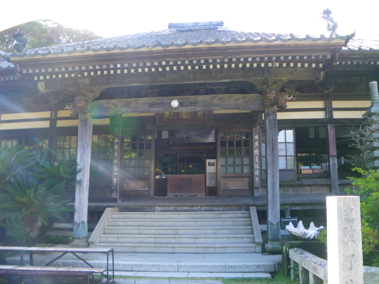 1635年三代将軍徳川家光によって創建された日蓮宗の寺院。1854年の下田条約締結の舞台となった場所です。本堂の裏手には古墳時代につくられたと推定される横穴古墳もあり、人骨や勾玉、土器などが発見されています。柵越しに見学ができました。