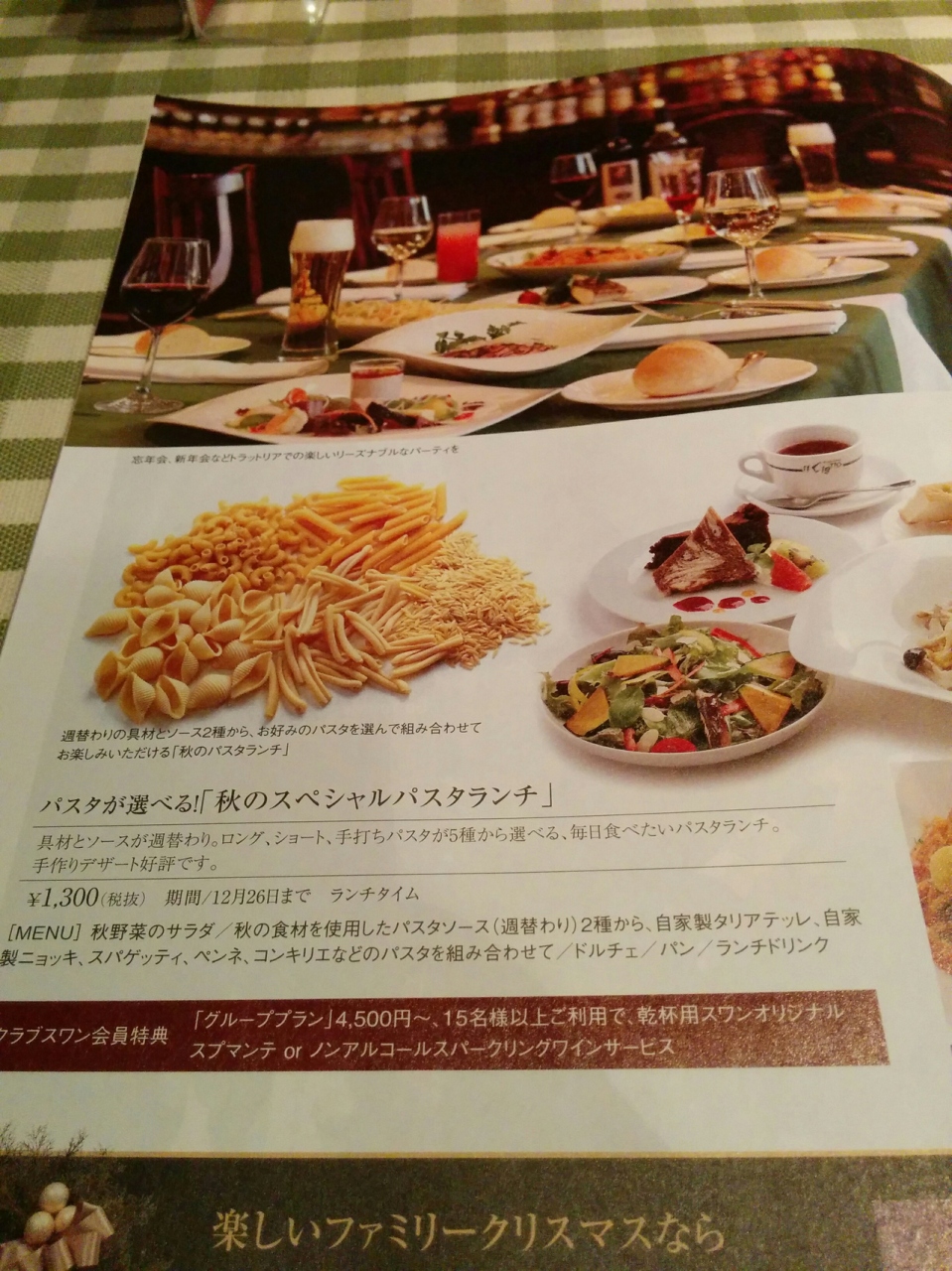 今回、「秋のスペシャルパスタランチ」を味わって見ました。具材とソースが週替わりで