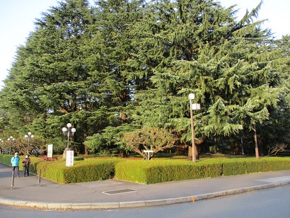 初代のなんじゃもんじゃの木は青山練兵場の時代からこの場所に有りなんじゃもんじゃの俗称で呼ばれていましたが枯死した為、現在のヒトツバタゴが植えられました。花が咲いてないとどの木なのか解らなですが、5月になれば白い花が咲きます。