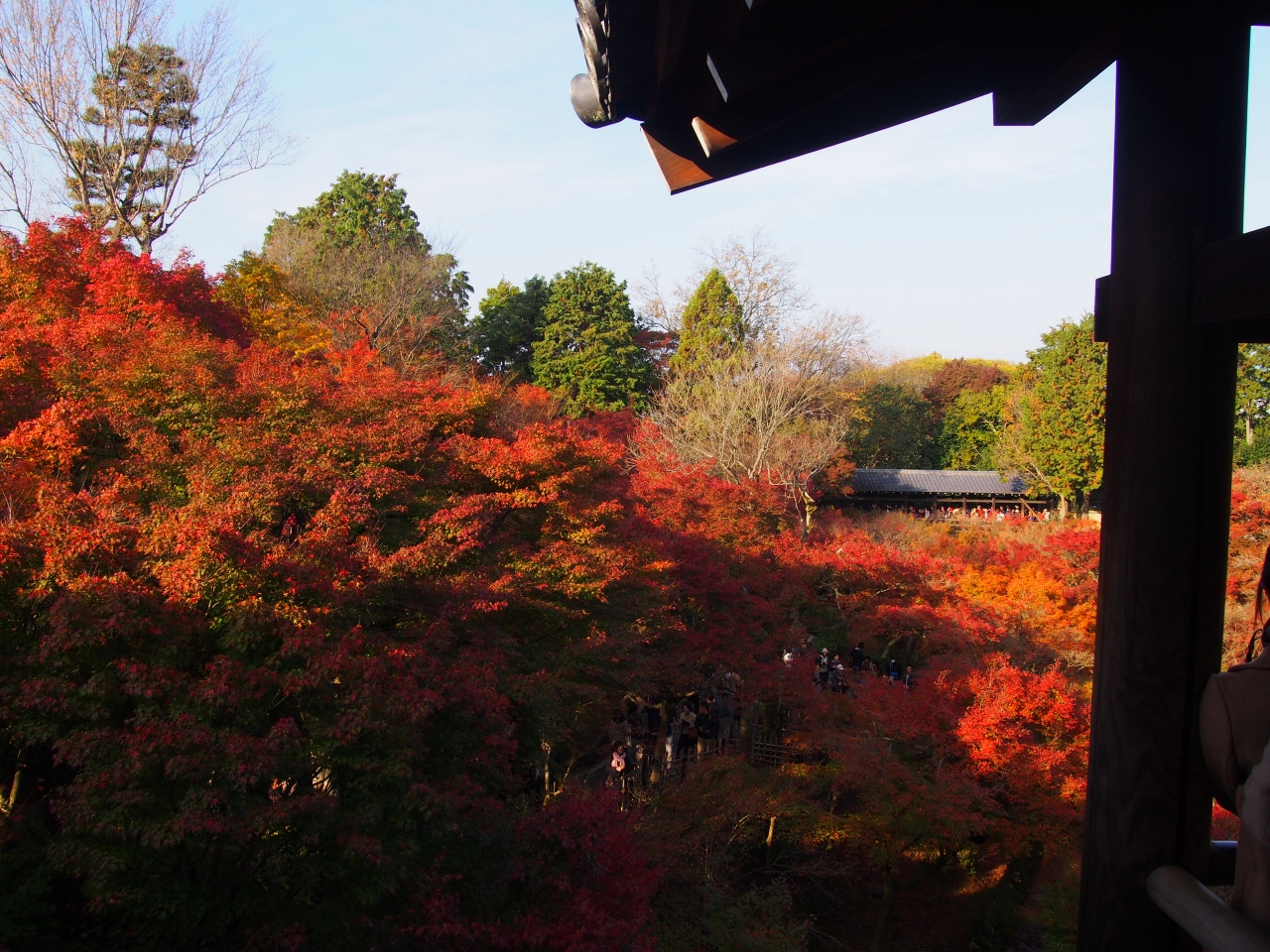 橋と紅葉は絵になりますね。もっとも、この場所にはもともとは桜が植えられていたそうです。桜があると遊興の地になり、修行の妨げになるかもしれないからと、紅葉が植えられたという話しが残されています。紅葉でも観光客にとっては立派な遊興の地となっていますね。