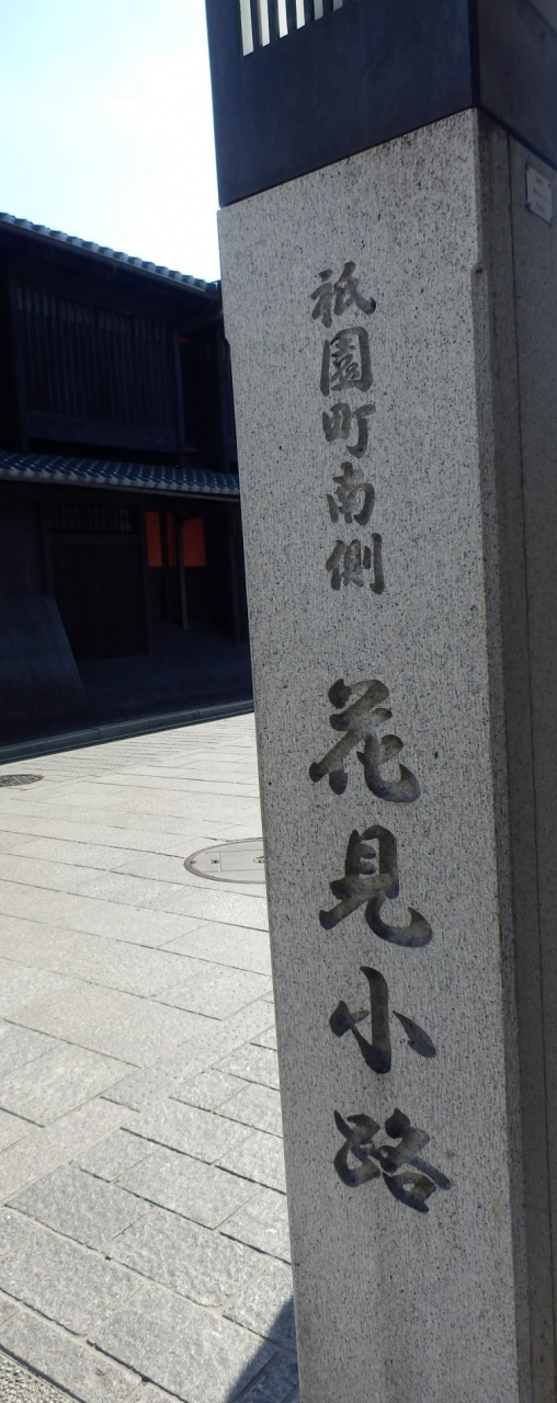 京都市、阪急京都線河原町駅から四条大橋を渡り徒歩10分、京阪本線祇園四条駅から徒歩4分程で花見小路の中間地点に到達する、この北側(左)はバー、スナックが多い通、南側(右)が京都らしい風情のある通りと二分されてる、南の通は石畳み、電柱の地中化完了しておりよい景観が保たれている、京風料理店、お茶屋などが軒を並べている、<注>北側が石畳でかつ無電柱なのかは確認していない