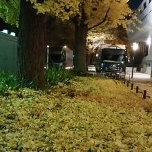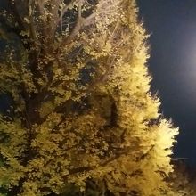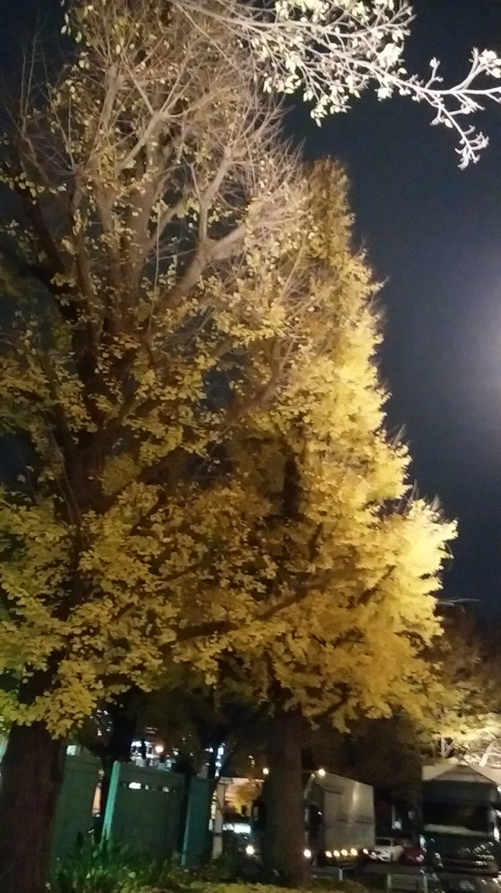 JR上野駅公園口改札を出て横断歩道を渡ったところから銀杏が街頭に照らさせてきれいでした。