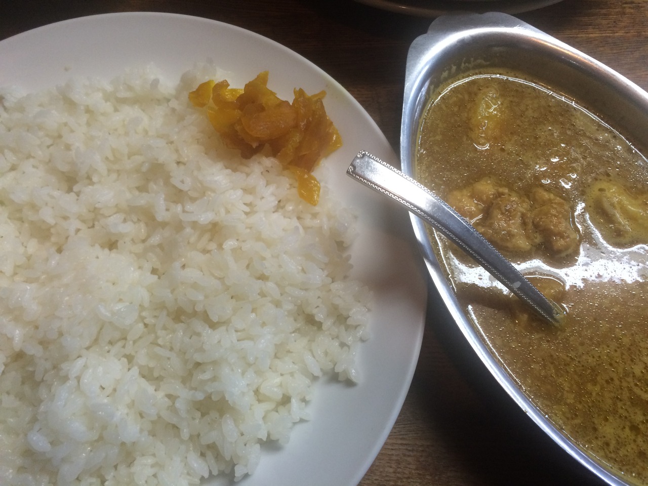 昭和時代から営業している雰囲気がある古びた店です。カウンターのみで7人ぐらいで満席です。メニューは御飯物はカレー類のみでした。チキンカレーはスープっぽいルーでチキンとジャガイモが入っていてカレーとの相性は良かったです。
