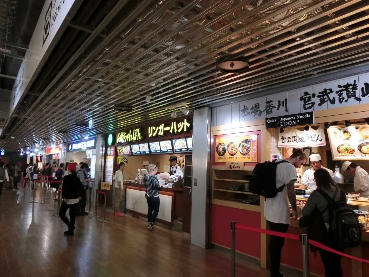 チェックインカウンター周辺にあるフードコートは空港にしては比較的安価に食事ができて使い勝手良いです。