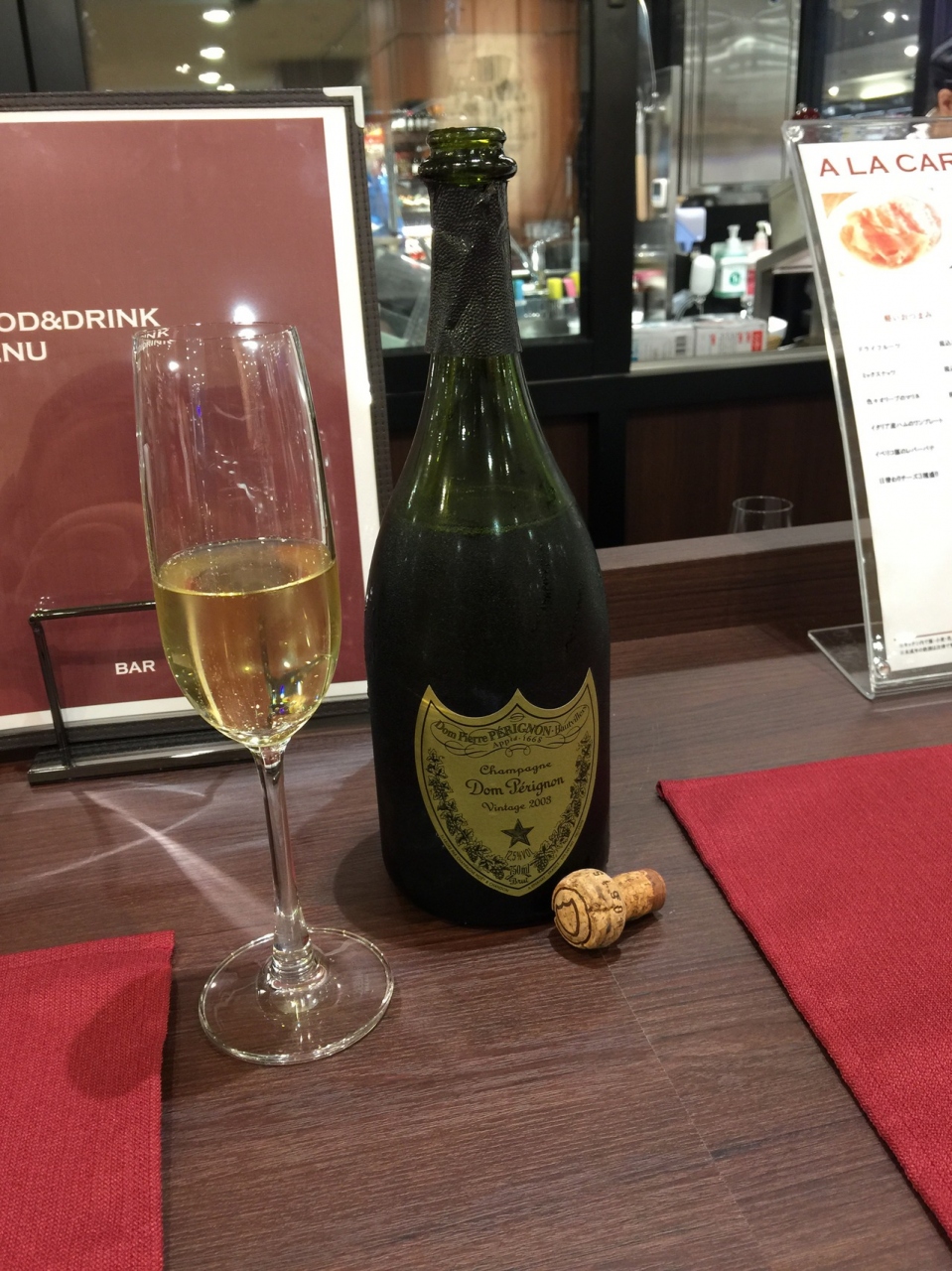 スーパーのオープンに合わせて行ったら、2階にシックなバースペースがあり、本日限りで、ドンペリか1杯580円だったので、思わずドンペリを注文してしまいました。
