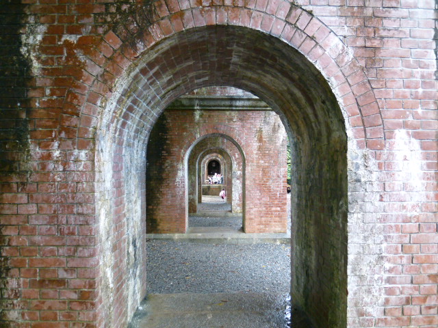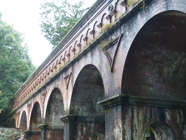 禅寺として格式ある南禅寺の境内を抜けると驚くような橋が見えてきます。これは明治時代に琵琶湖から京都へ疏水するため造られたられた水路閣です。水路橋の色褪せた雰囲気の良さはレンガ造りの味わいが景観ともマッチしていて美しいですね。水路橋の真下に幾重にも続くアーチも素敵ですね。