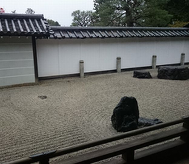 方丈庭園を鑑賞した後、廊下を進むと小方丈庭園が見えてて来ます。方丈の西側に位置し、別名「如心庭」と呼ばれています。「心」の字のかたちに石を配した枯山水庭園です。更に進むと「六道庭」や「華厳庭」などがあります。この日は割合空いてましたので、ゆっくりと庭園鑑賞ができました。