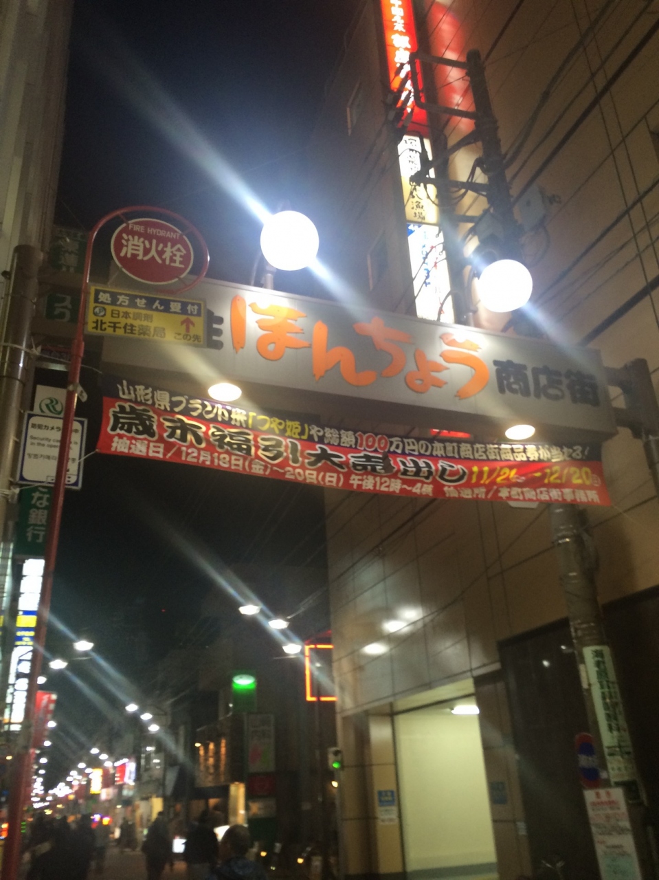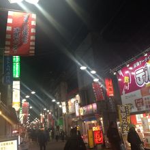 北千住駅前前の直線に伸びている道路から枝分かれした道沿いにある商店です。日中時間帯によって歩行者天国になります。屋根がない商店街で幾つかまた枝分かれしていた道があり、枝分かれした道沿いの方が飲み屋は多かったです。