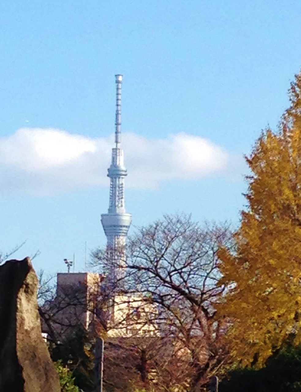 園内からはスカイツリーを見ることができ、「さくら通り」とよばれる園路は桜の名所にもなっています。